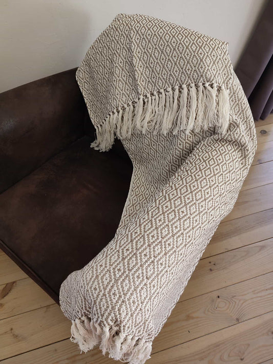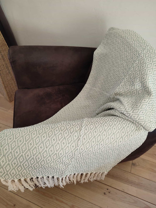 Plaid motif LOSANGE - 100% coton (vert eau)