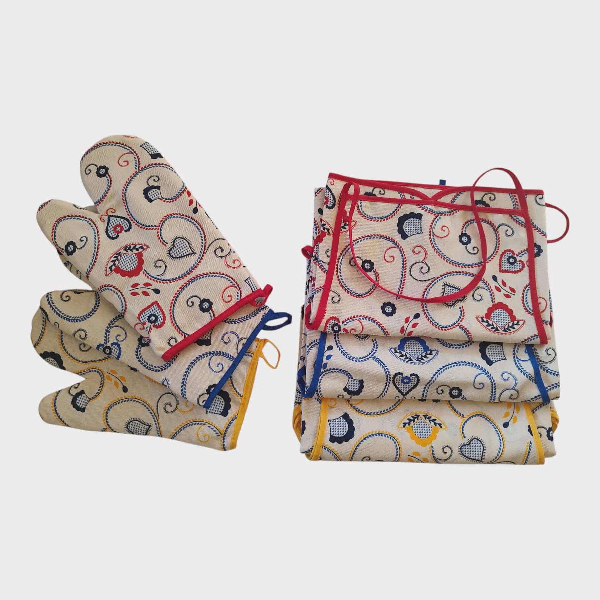Très beau gant de cuisine 100% coton, made in Portugal aux motifs traditionnels de Viana, au Nord du Portugal