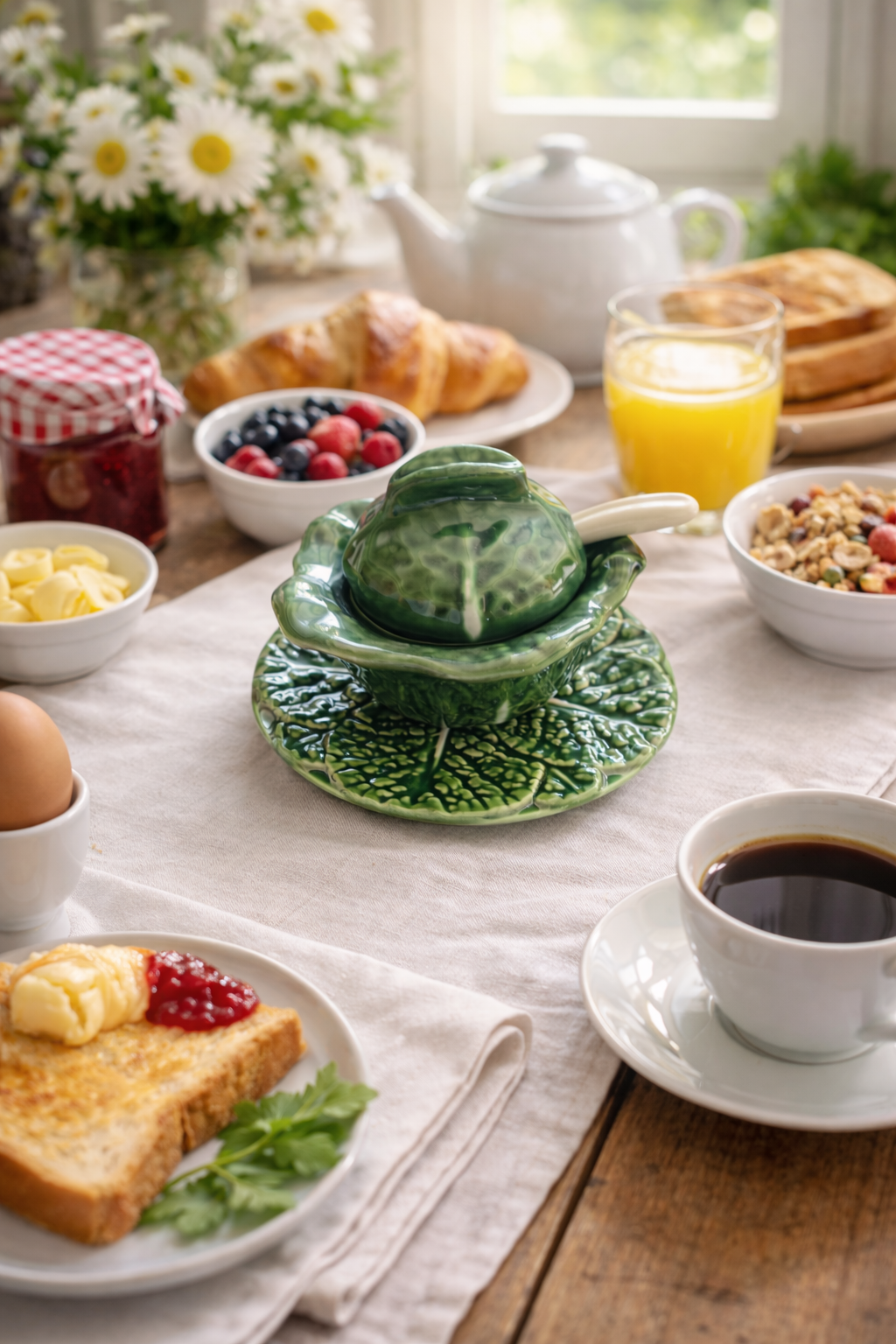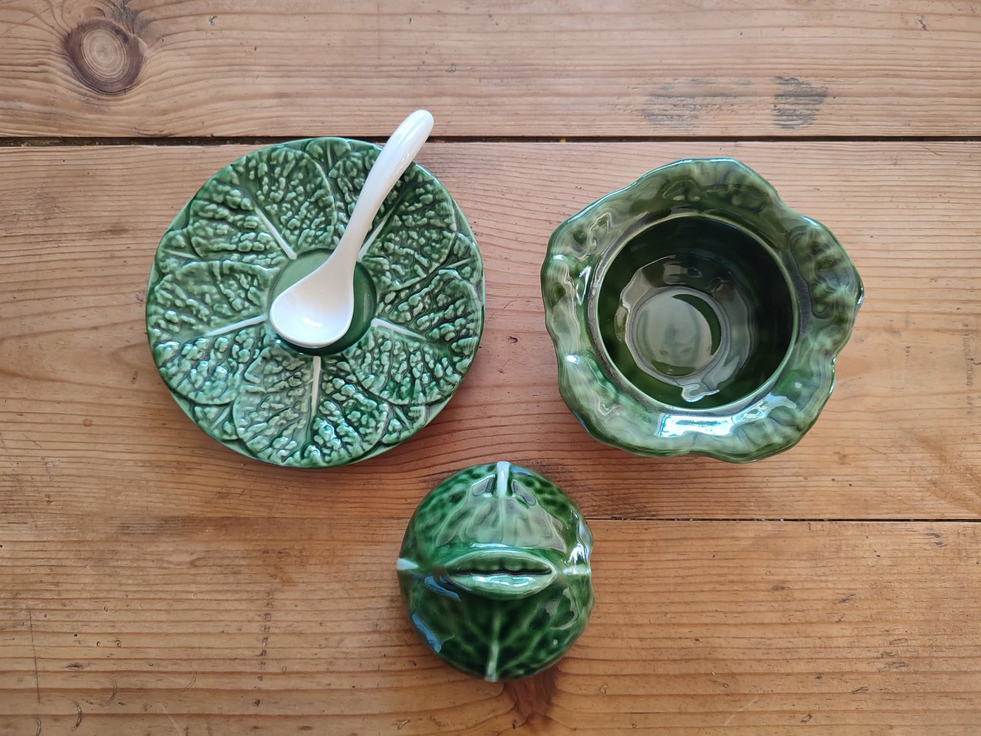Sucrier ou compotier en céramique portugaise, très original avec sa forme de chou.