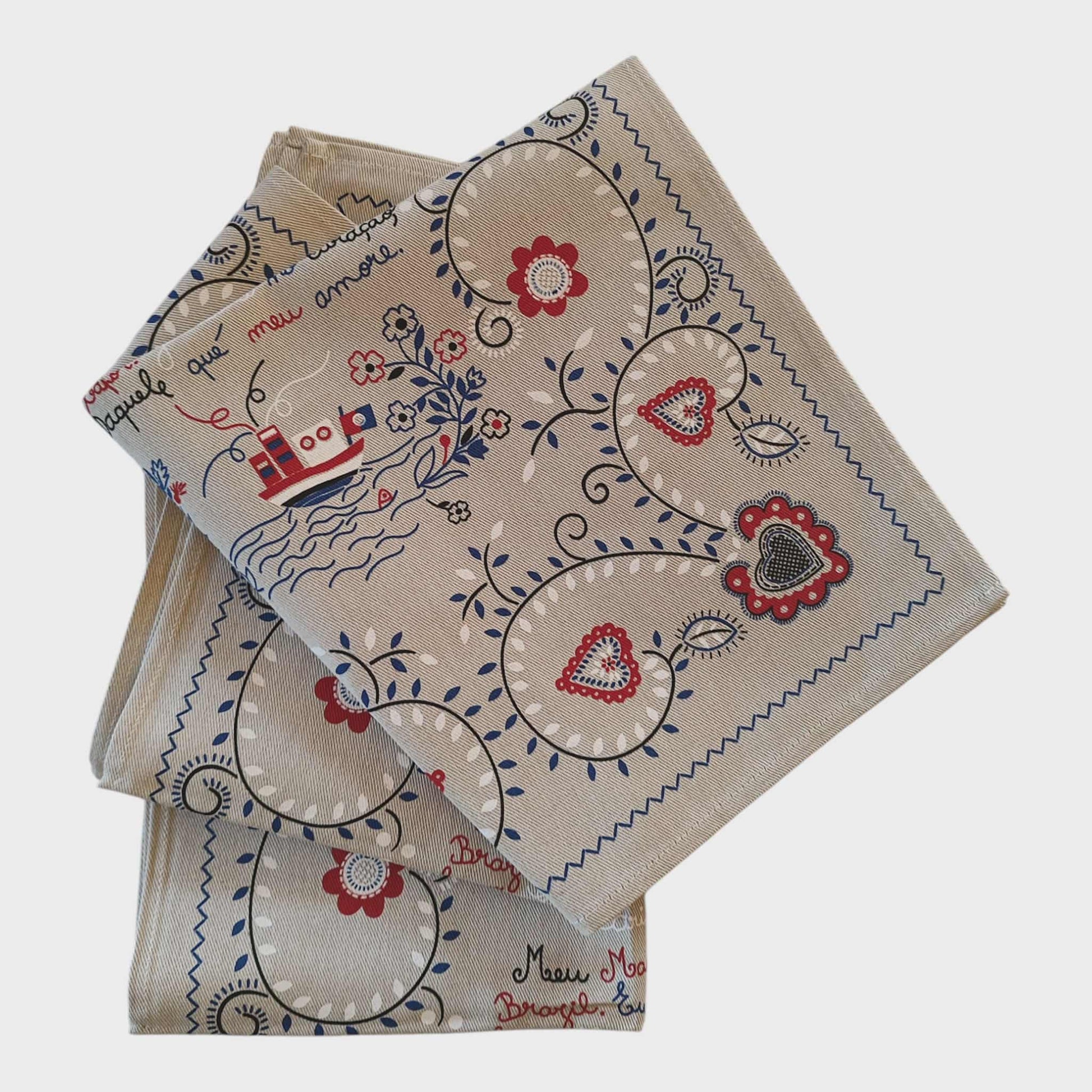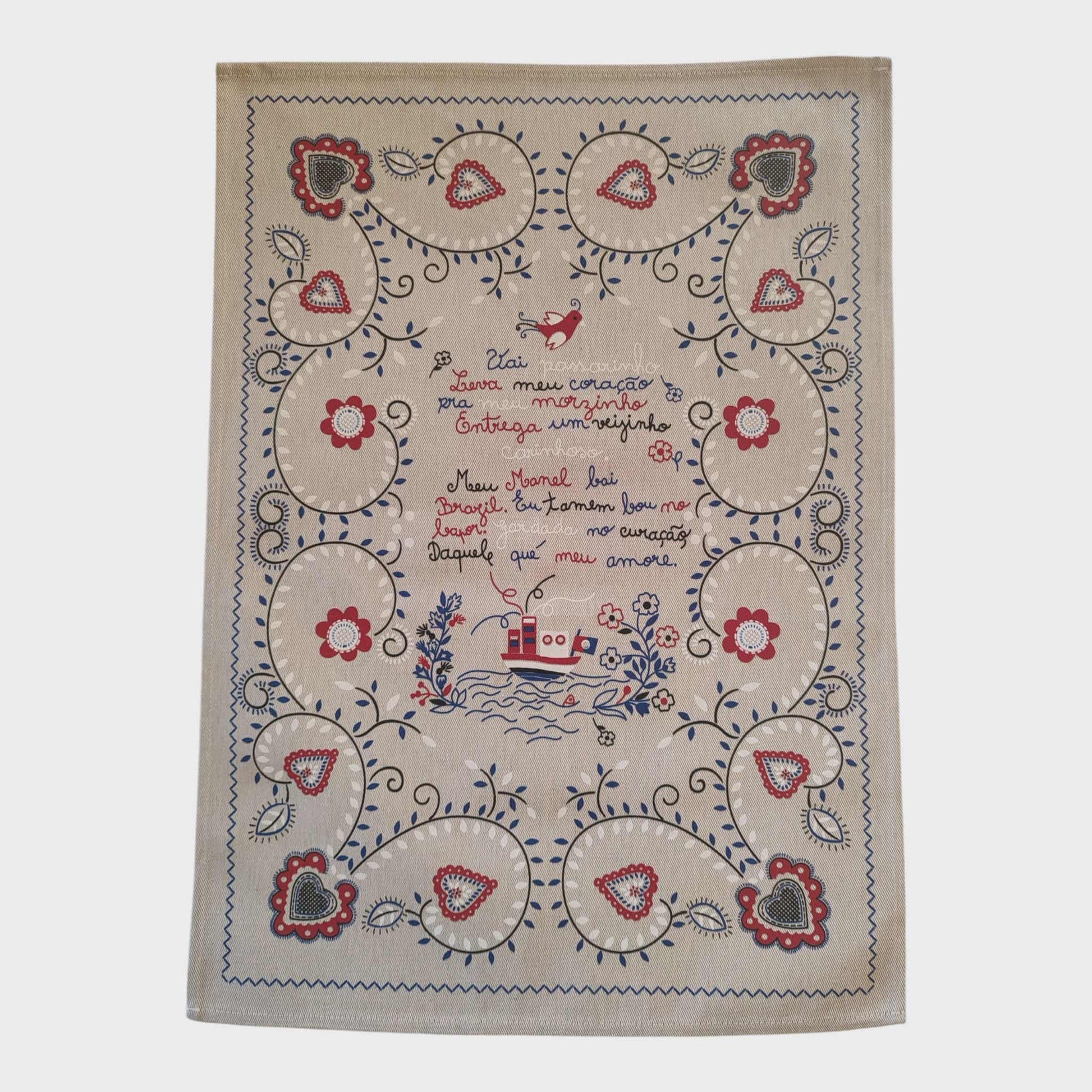 Très beau torchon 100 % Made In Portugal, de couleur crème sur le thème de la mer & coeur.