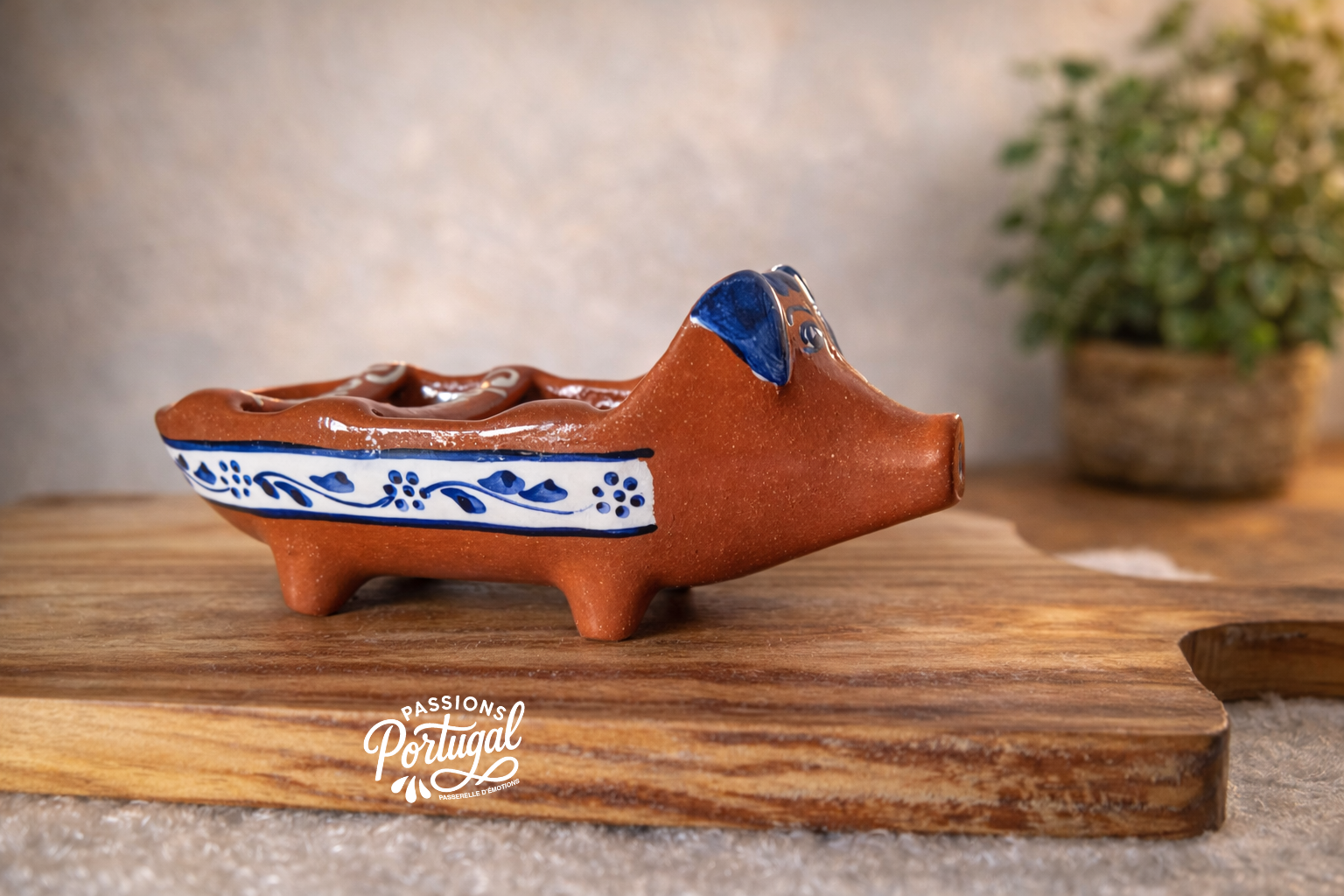 Grille pour chouriço grillé en forme de cochon, en terre cuite rouge "assador de chouriço"